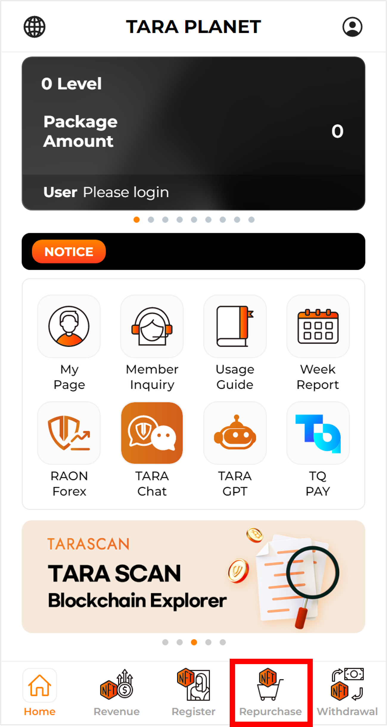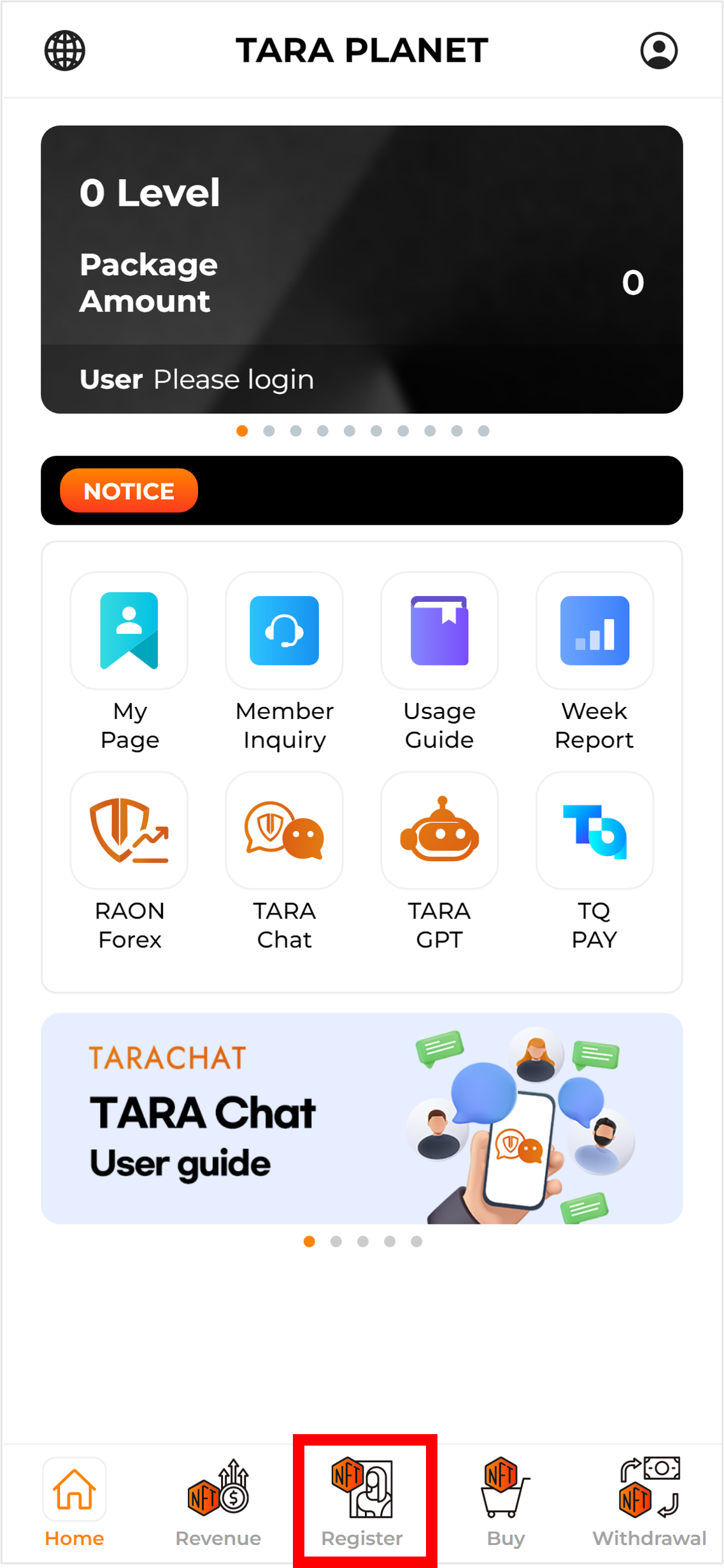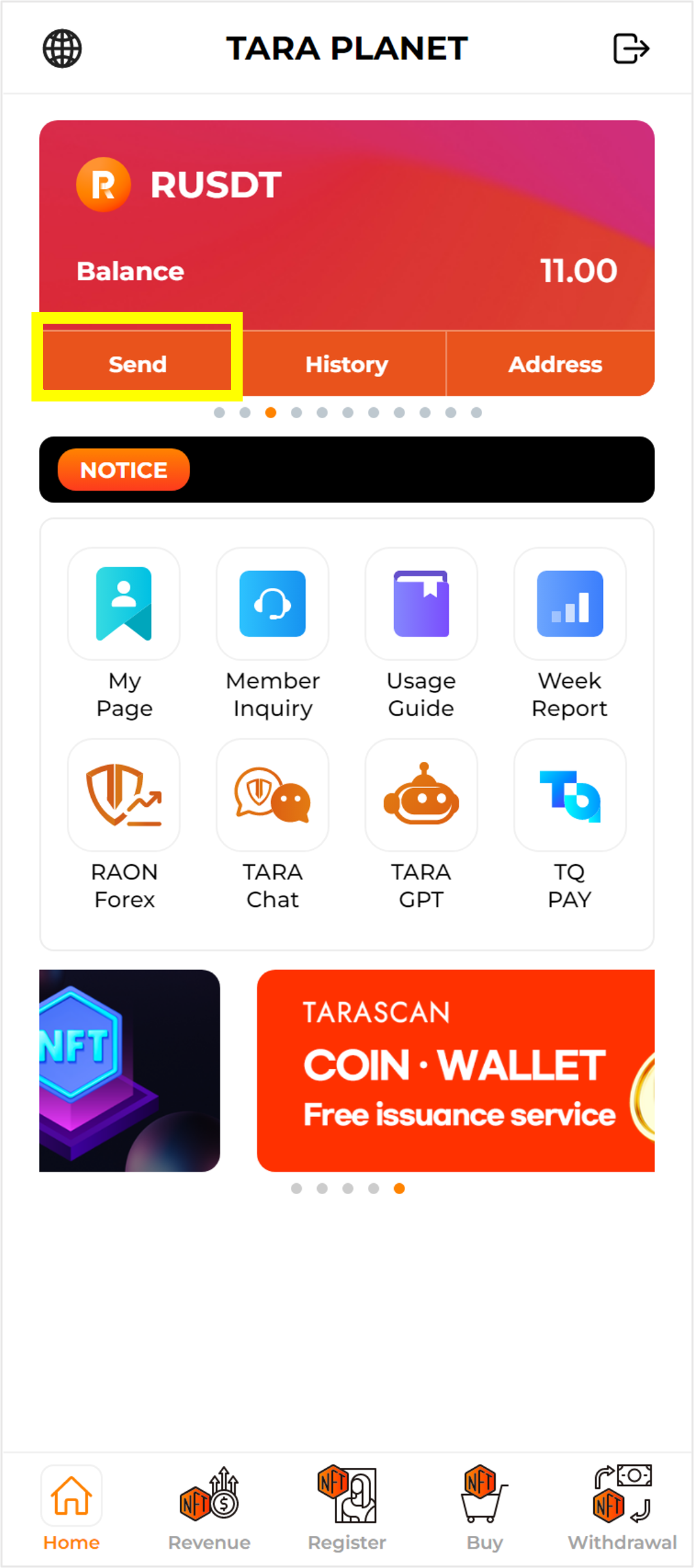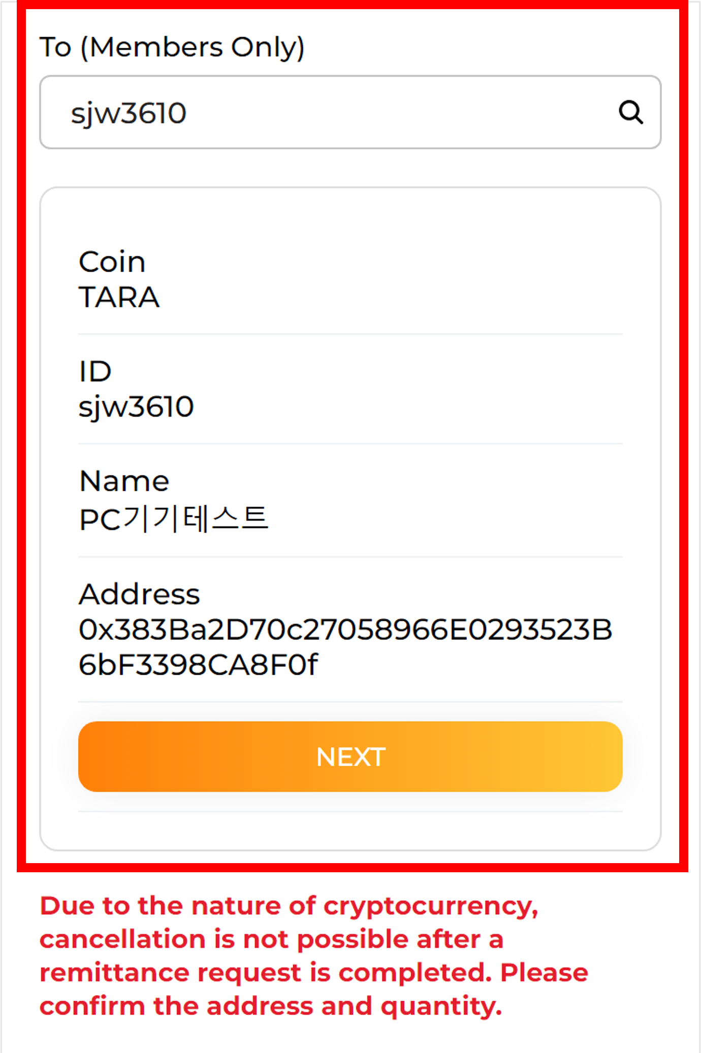 4) Please enter your ID and address on Members Only if you want to trade with TARA PLANET members, or enter your other wallet address information on other walls only if you want to trade with TARA Wallet wallet.
