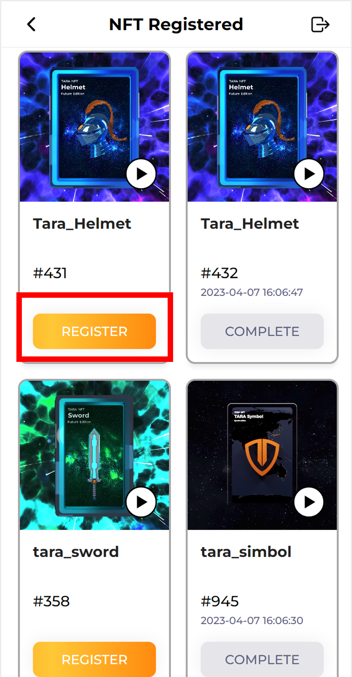 2) In the list of NFTs you currently have, click the REGISTER button of the NFT you want to register to complete the registration.