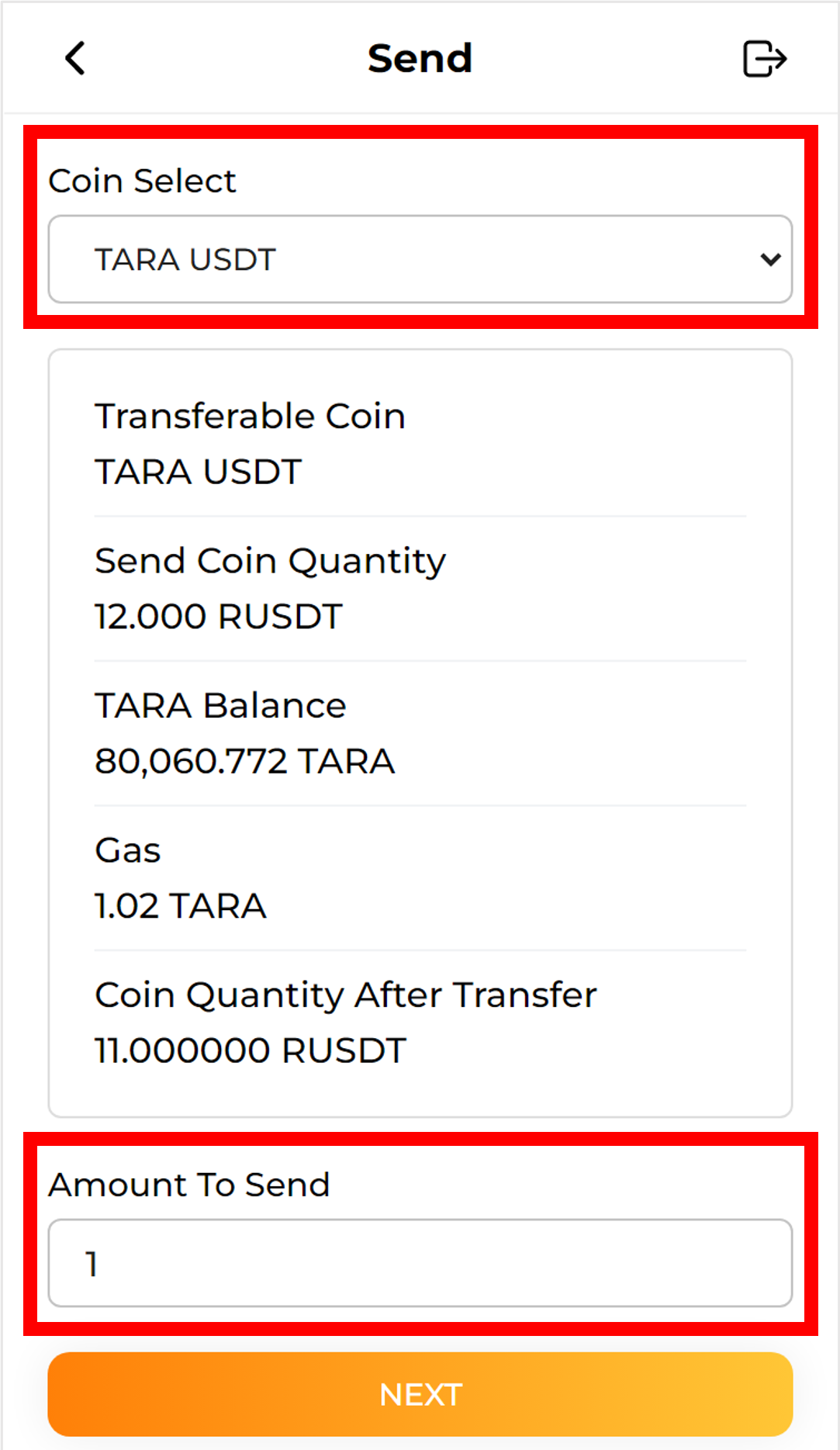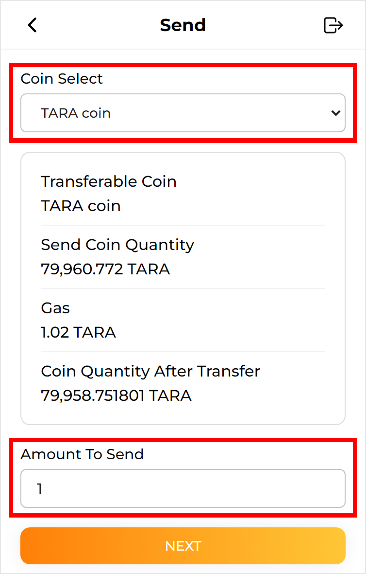 2) Select the type of coin you want to transfer and enter the amount you want to transfer.