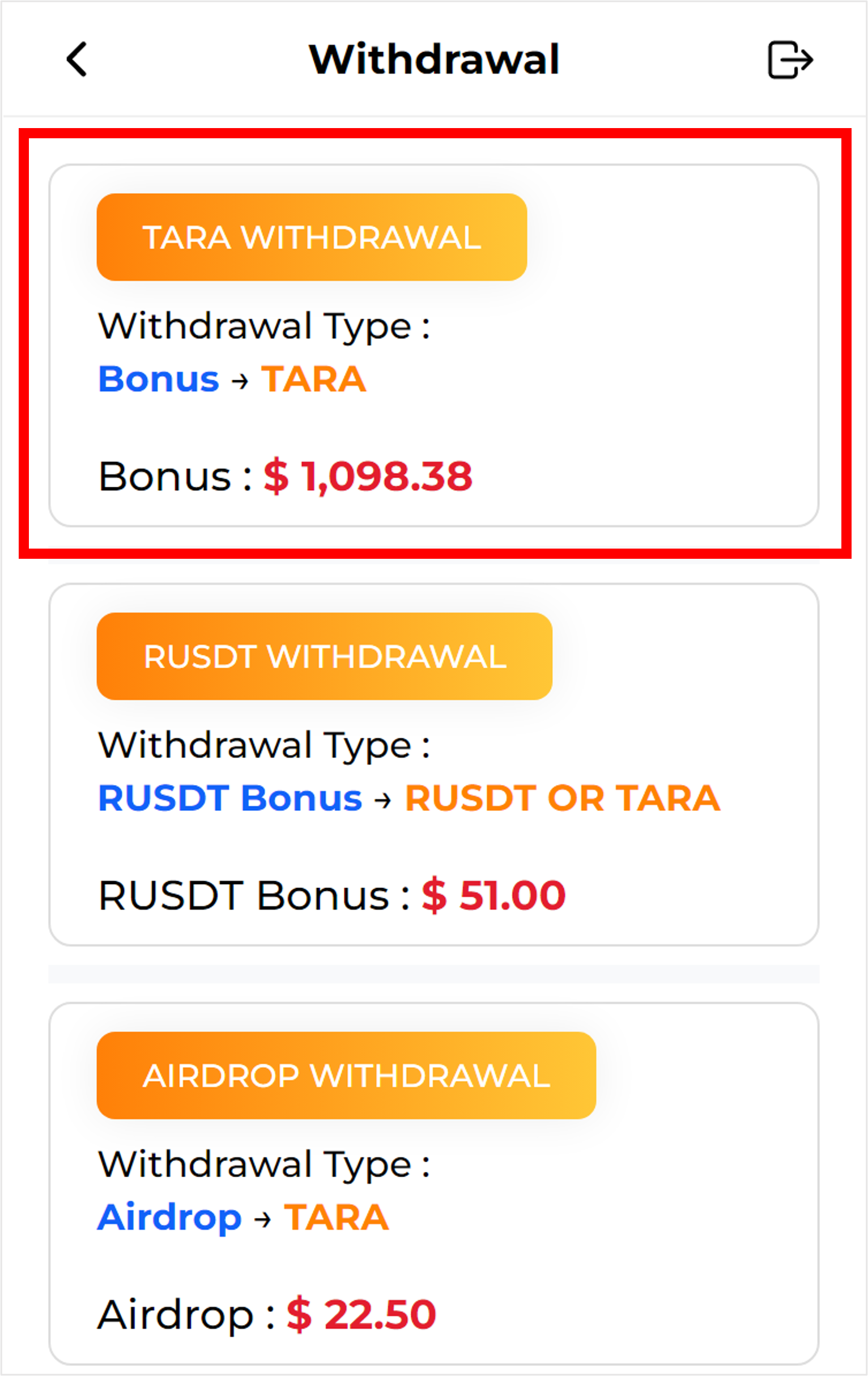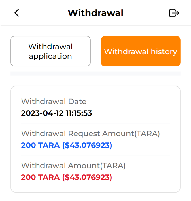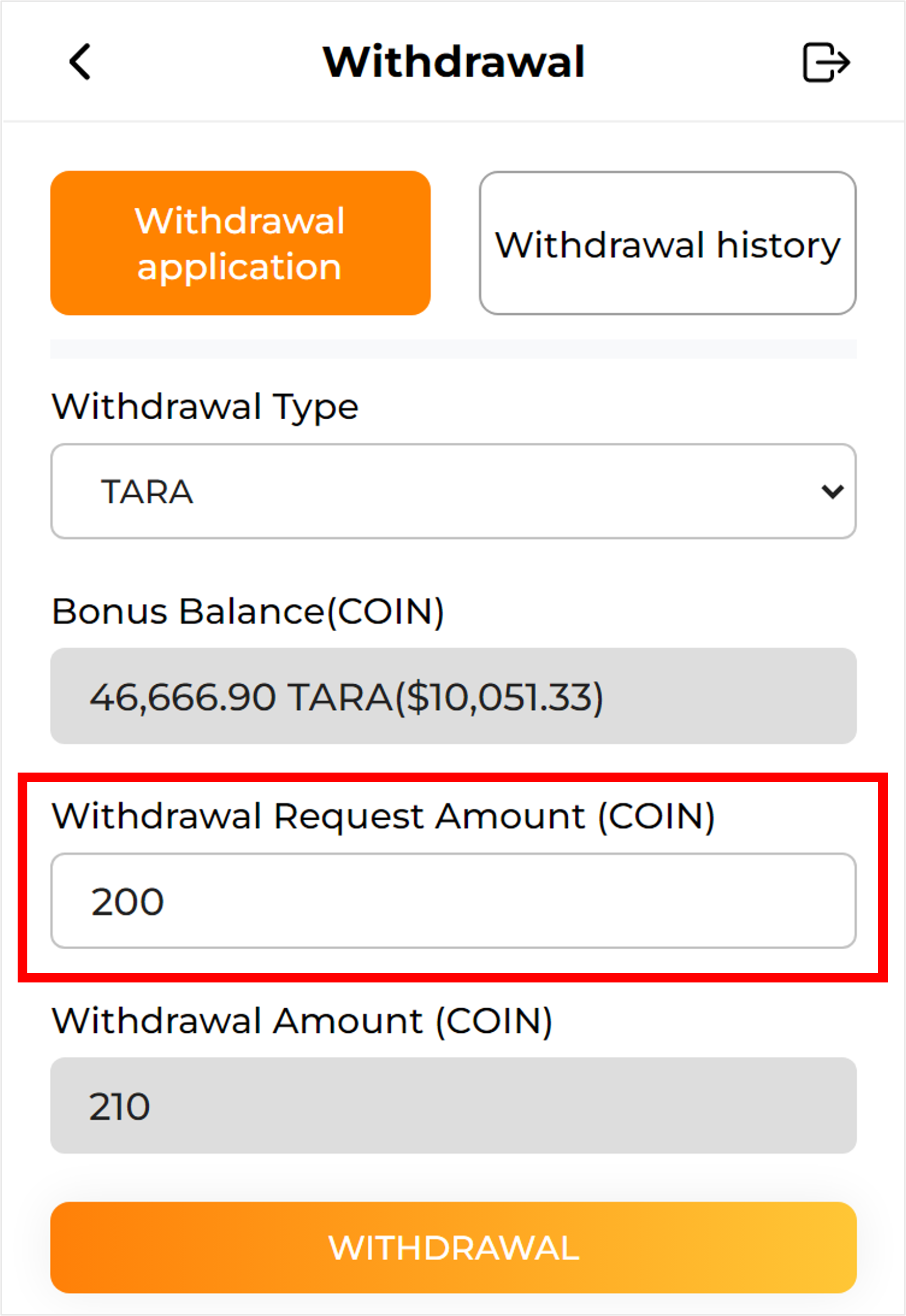 3) The withdrawal request amount can be entered from at least 200 TARA.