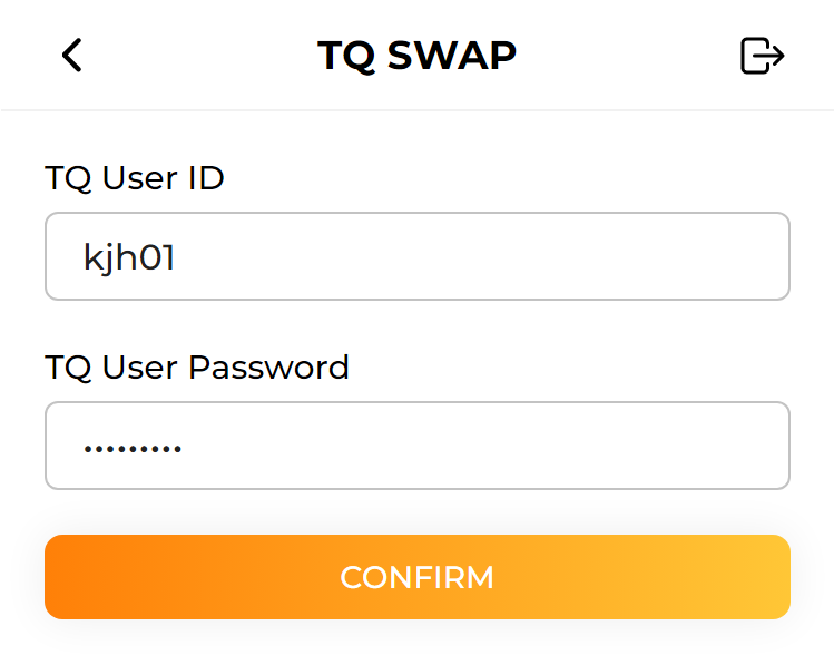 4) After checking the member name of the ID you searched for, enter the amount of coins to be exchanged for TQ. You can check the TQ expected exchange amount and the total amount received in TQ excluding fees.