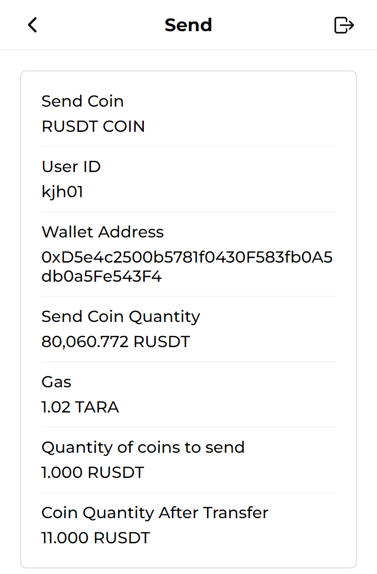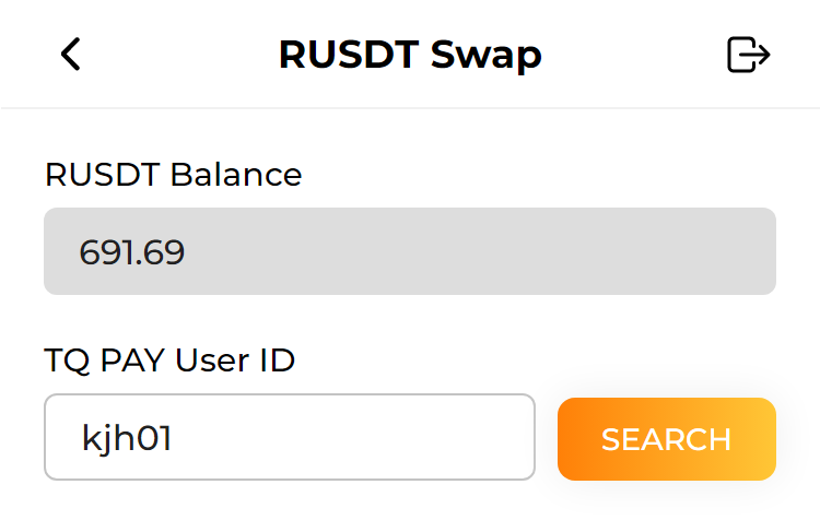 3) After checking the amount of RUSDT you have, enter your TQ member ID and click the Search button.