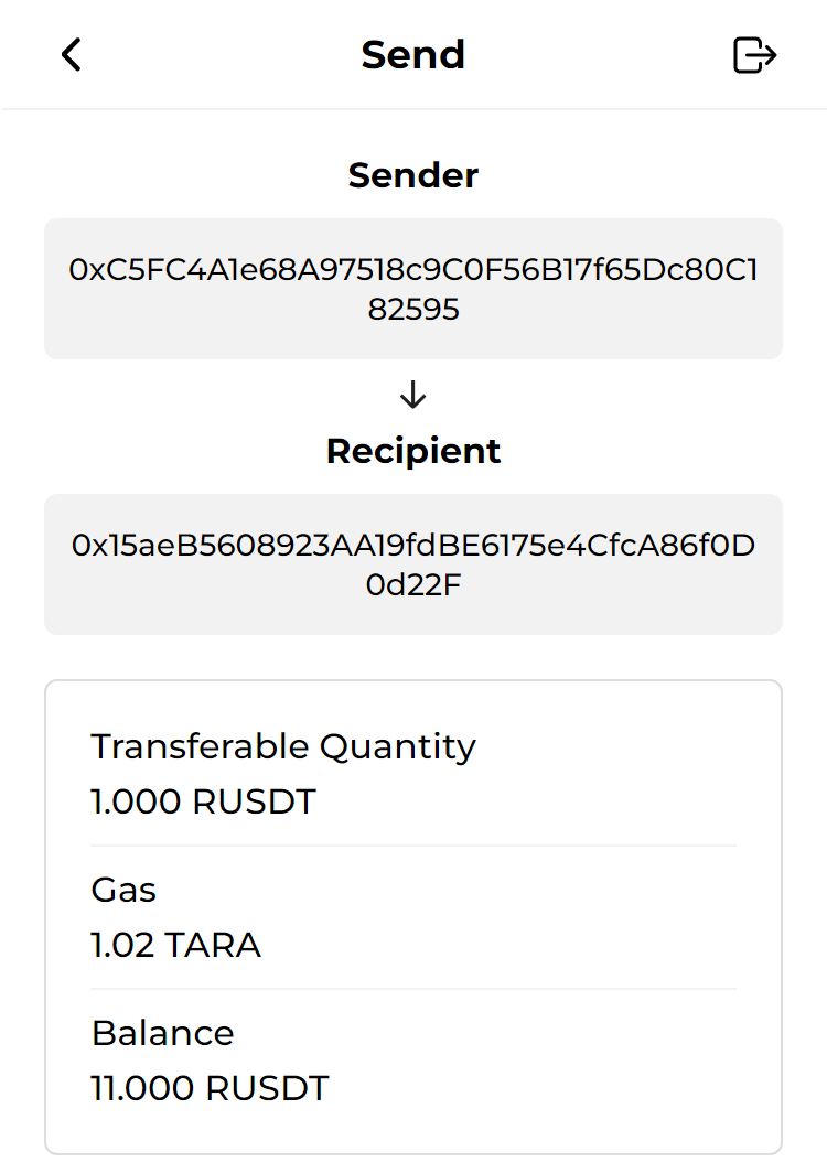 The amount to be withdrawn including the TQ fee and the amount that can be received in RUSDT are automatically calculated and displayed.